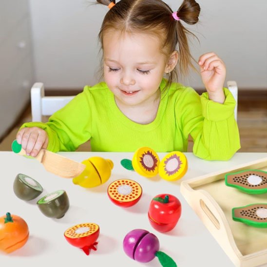 Le réalisme des fruits et légumes, avec leurs détails intérieurs fidÚlement reproduits (graines, textures, couleurs), fascine les enfants qui découvrent ainsi la diversité alimentaire. N'est-ce pas une façon ludique et naturelle de les familiariser avec une alimentation saine et variée ?
